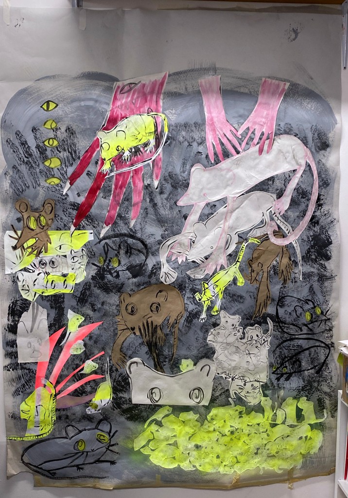 I am pretty sure any artist reading this will be like, gurl that is not happening ever, and don’t I know it. We are always making do, cramming in, contorting our brains and bodies around obligations and demands and everything else, and if you manage to squeeze out a small piece of work, or focus your mind for a short time- that is golden. I need to check myself as well remembering that there are many, many frustrated artists who are denied any opportunity to work, because of life circumstances beyond their control. I have a studio I can come to. I have materials. I have goals in mind. This is very much a me problem but many artists will face it to different degrees- how do you survive? How do you keep making work? Does it matter? Should you keep going?